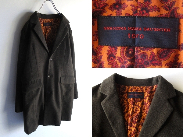 - 定価60900円 GRANDMA MAMA DAUGHTER toro グランマママドーター トロ ペイズリー裏地 ウールアンゴラカシミヤビーバー チェスターコート 0