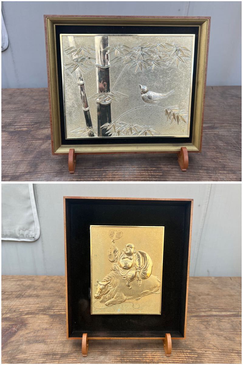 - 【YO-617】黄金画 竹と雀 布袋 置物