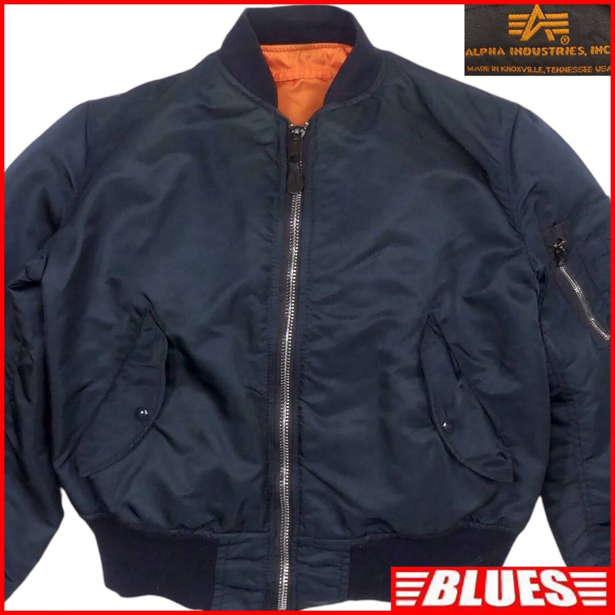 > 即決★アメリカ製 ALPHA★メンズ M フライトジャケット MA-1 アルファ 紺 ネイビー ブルゾン 軍物 空軍 90’s ヴィンテージ
