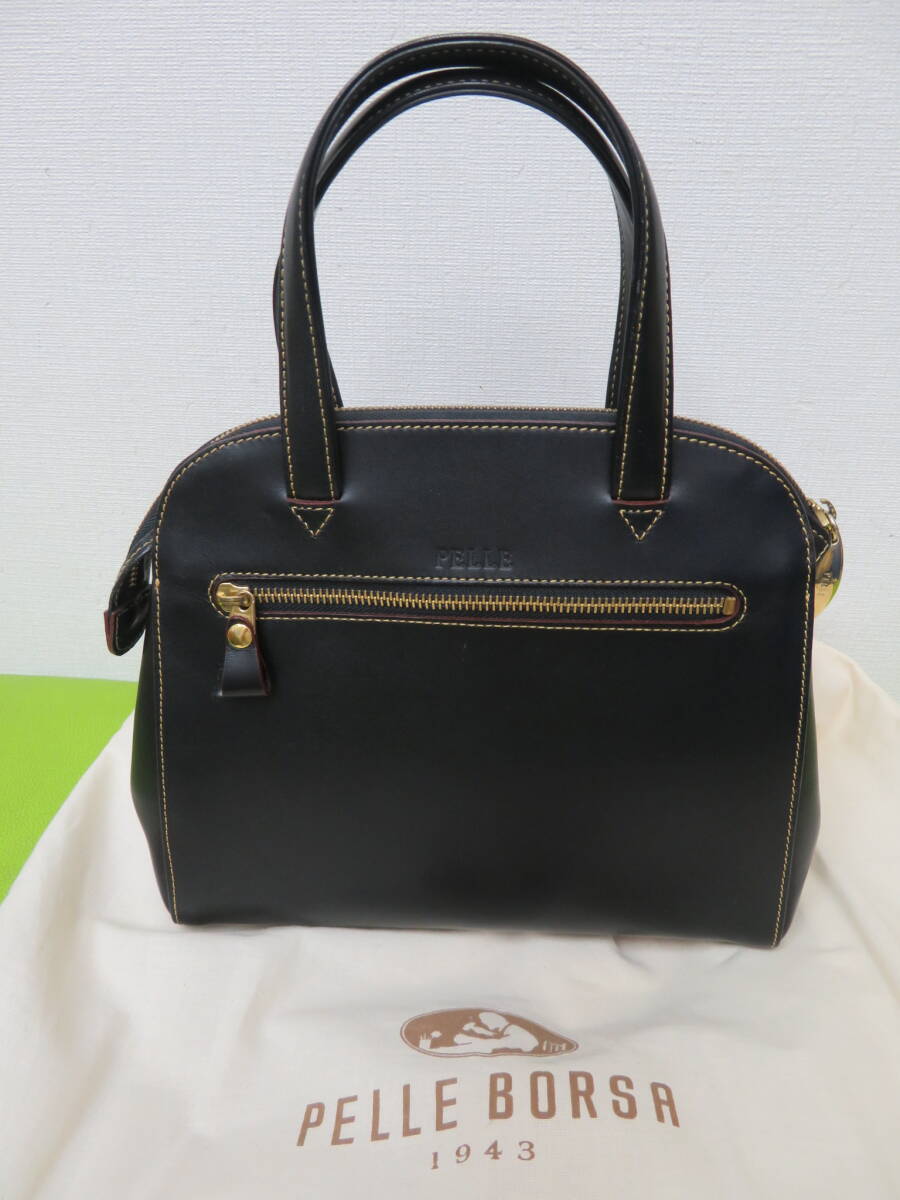 - ♪♪82695 PELLE BORSA ペレボルサ レザー ハンドバッグ ブラック ♪♪