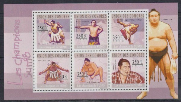 - コモロ切手『大相撲』(朝青龍/曙/白鵬/千代の富士/常陸山) 6枚シート 2010