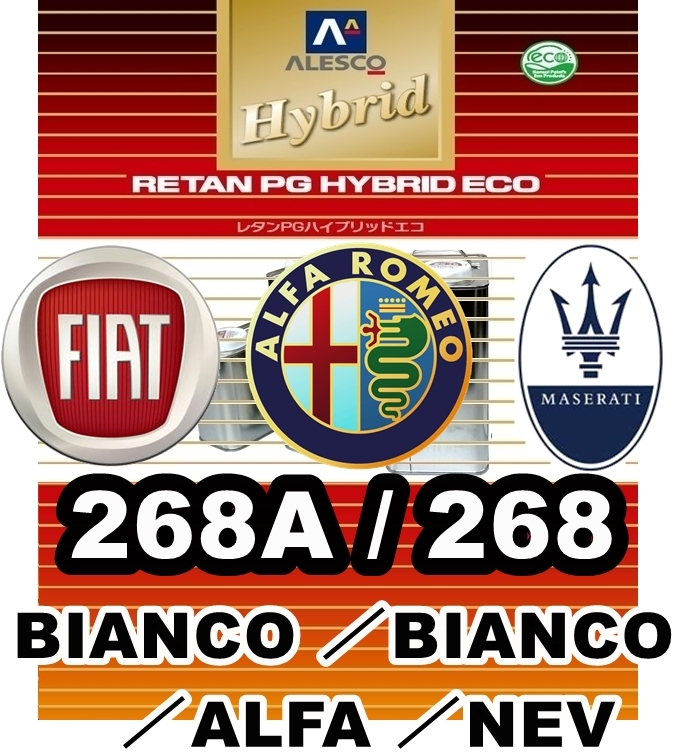 - PGハイブリッド 調色塗料 ●フィアット ●アルファロメオ ●マセラティ 共通【268A /268 BIANCO(ビアンコ)希釈済500g】ボサノバ ホワイト