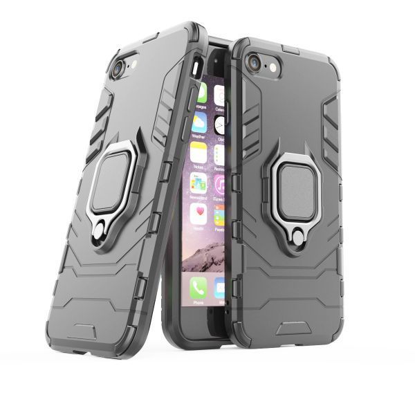 > T在庫処分 黒 iPhone 7 指リング付き ケース 衝撃吸収 カバー アイフォーン セブン 本体 保護 丈夫な耐衝撃 スタンド機能 国内配送 限定