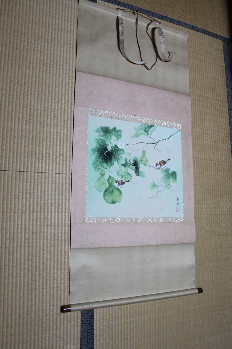 - 掛軸 松田香邦 雀 瓢箪 中古