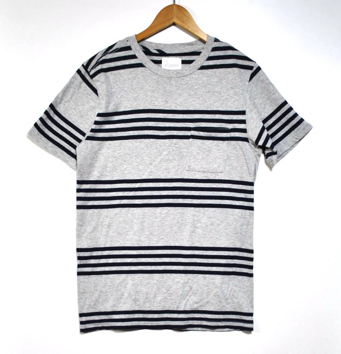 > 即決【SATURDAYS SURF NYC】サタデーズサーフ ボーダーTシャツ グレー L 古着