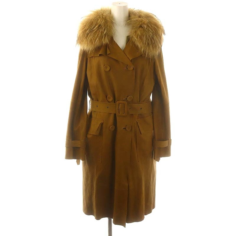 - ロゥタス Rawtus × ガリャルダガランテ GALLARDAGALANTE コート 山羊革 ラクーンファー カシミヤライナー 38 キャメル色 レディース
