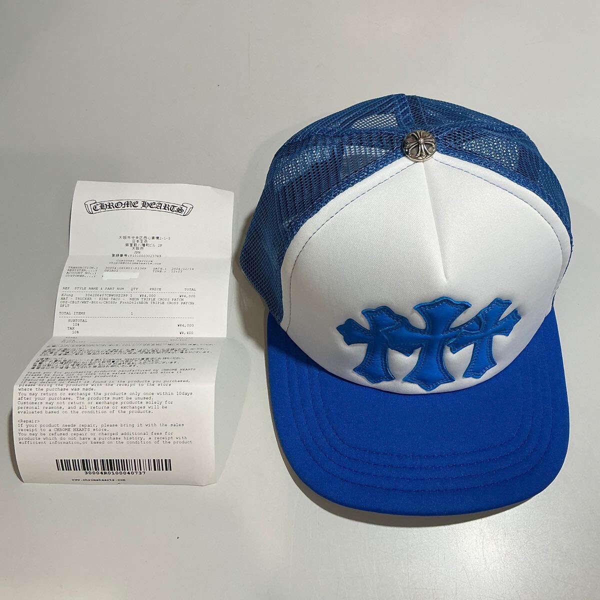 > CHROME HEARTS クロムハーツ キャップ 帽子TRUCKER CAP セメタリークロス レザーパッチ クロスパッチ USA製 羊革 blue ブルー 700546