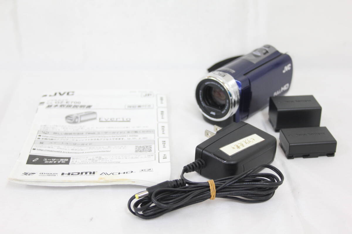 > 【返品保証】 【録画再生確認済み】JVC GZE700-A ブルー 60x バッテリー付き ビデオカメラ M966
