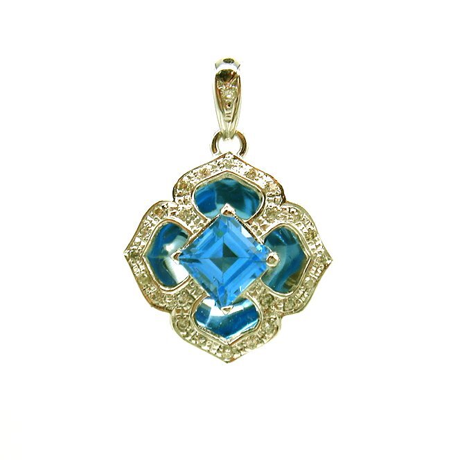 - PE913:K18WG ブルートパーズ ダイヤ ペンダント
