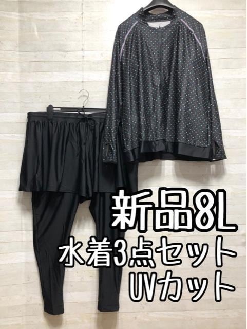 - 新品☆8L黒系♪UVカット水着3点セット♪ラッシュガード・レギンス♪〇B722