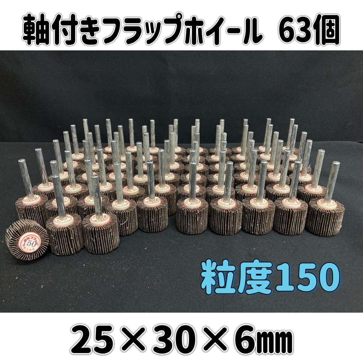 - 堀⑨) 軸付きフラップホイール 63個セット 粒度150番 25×30×6 フラップホイール OKフラップ グラインダー 研磨 研削 工具 (241220 9-3)
