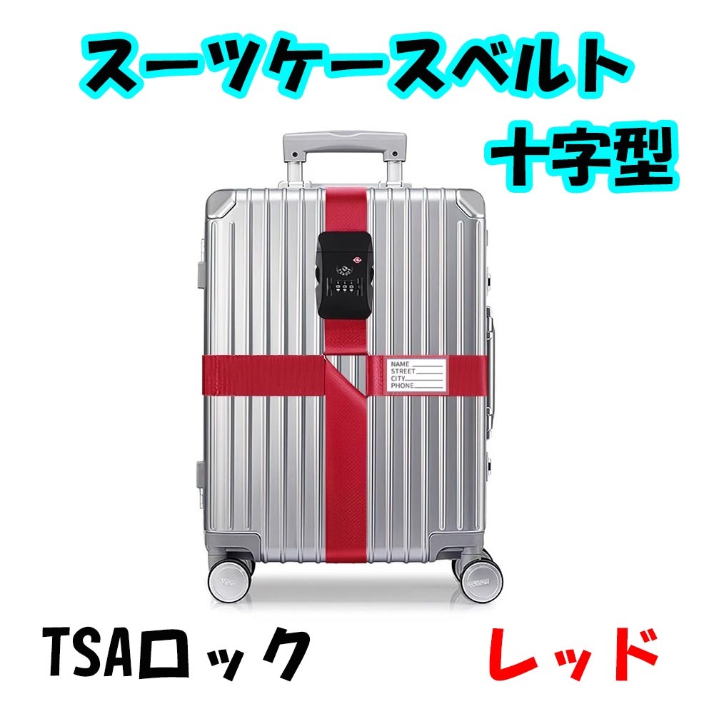 - スーツケースベルト 十字型 レッド ダイヤル式 3桁 TSAロック 旅行 出張 キャリーバッグ ベルト