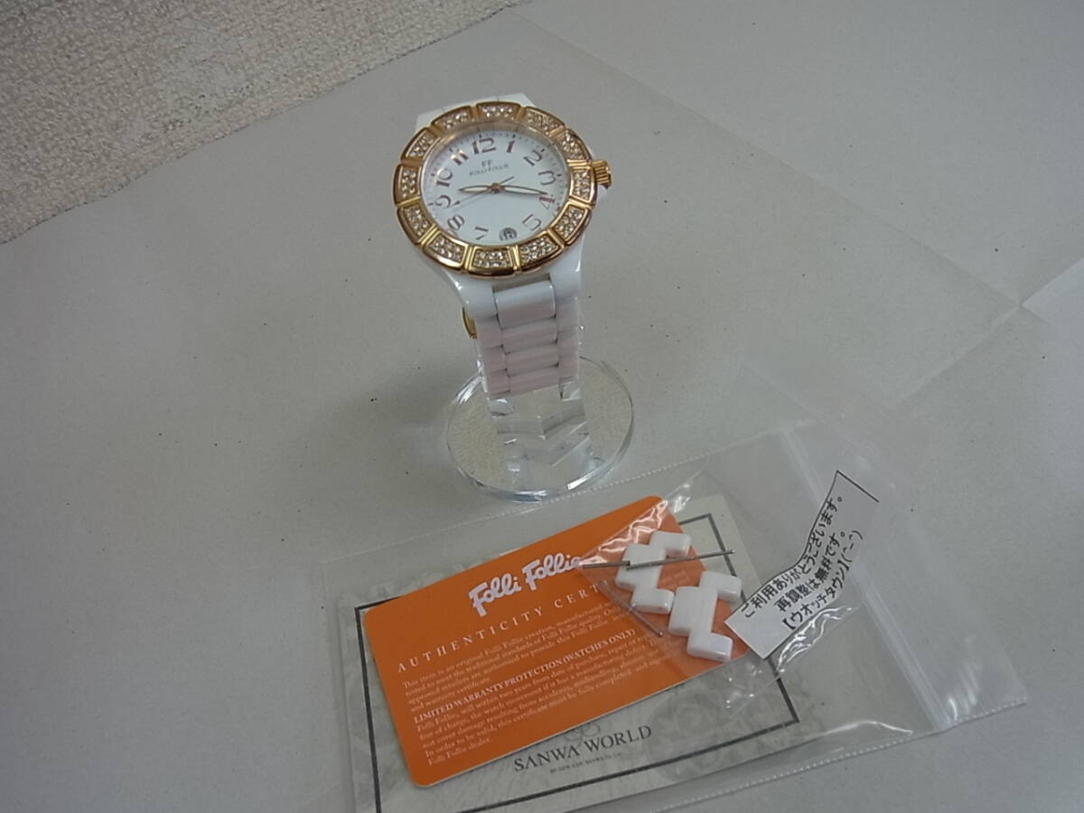 - 161214K42-1222K-A2■フォリフォリ■レディース クォーツ WF9F005BD セラミック ラインストーン/中古品
