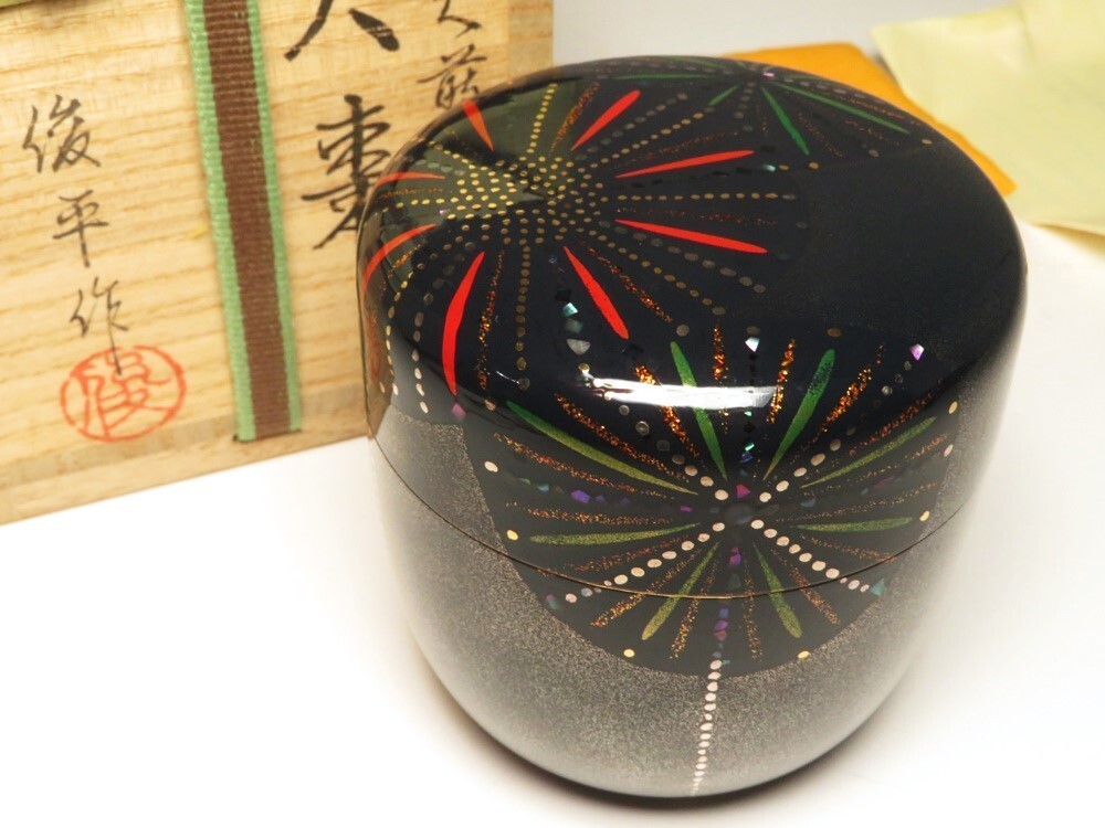 - 【9350】茶道具 花火蒔絵 大棗 俊平作(初品・買取品)
