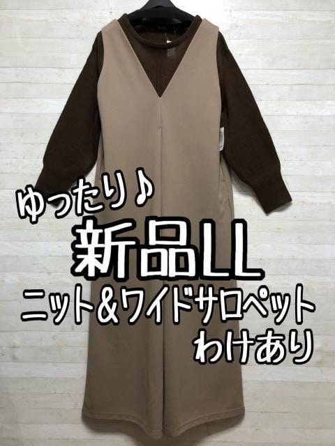 - 新品☆LL♪おしゃれな重ね着コーデ♪ニット&ワイドサロペット〇A956