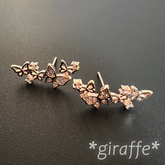 - B599 匿名配送 ピアス レディース バタフライ s925 ジルコニア ローズゴールド 蝶々 スタッドピアス