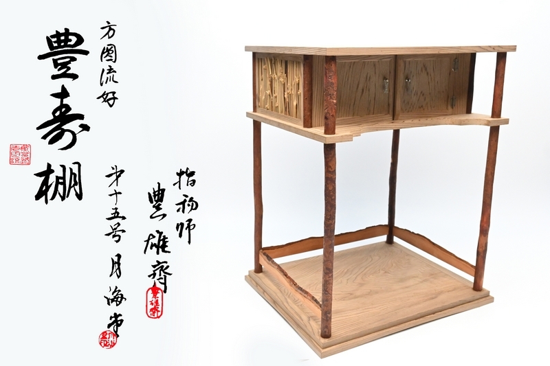 - 極上品 豊寿棚 [指物師 豊雄斎造]■ 方円流好 茶道具未使用 [杢目 脇後ろ竹入] 侘・寂 ■茶道具 煎茶道具 月海堂印 共布 超稀 共箱入り■