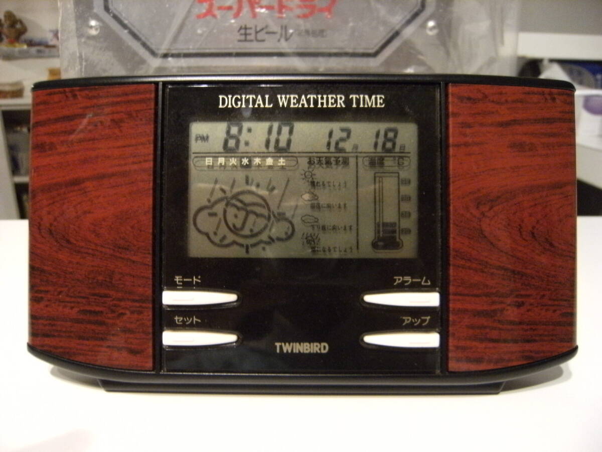 - 廃番★稼働品★昭和レトロ★90年代★日本製★当時物 TWINBIRD DIGITAL WEATHER TIME ツインバード 天気予報 温度計 目覚まし時計 置き時計