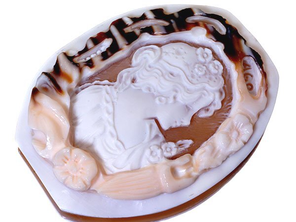 > 【ジュエリー極】作家品 サイン刻印有 華やかな女性と花の彫刻 高級3層シェルカメオルース 60.2mm×47.5mm w4820i【送料無料】