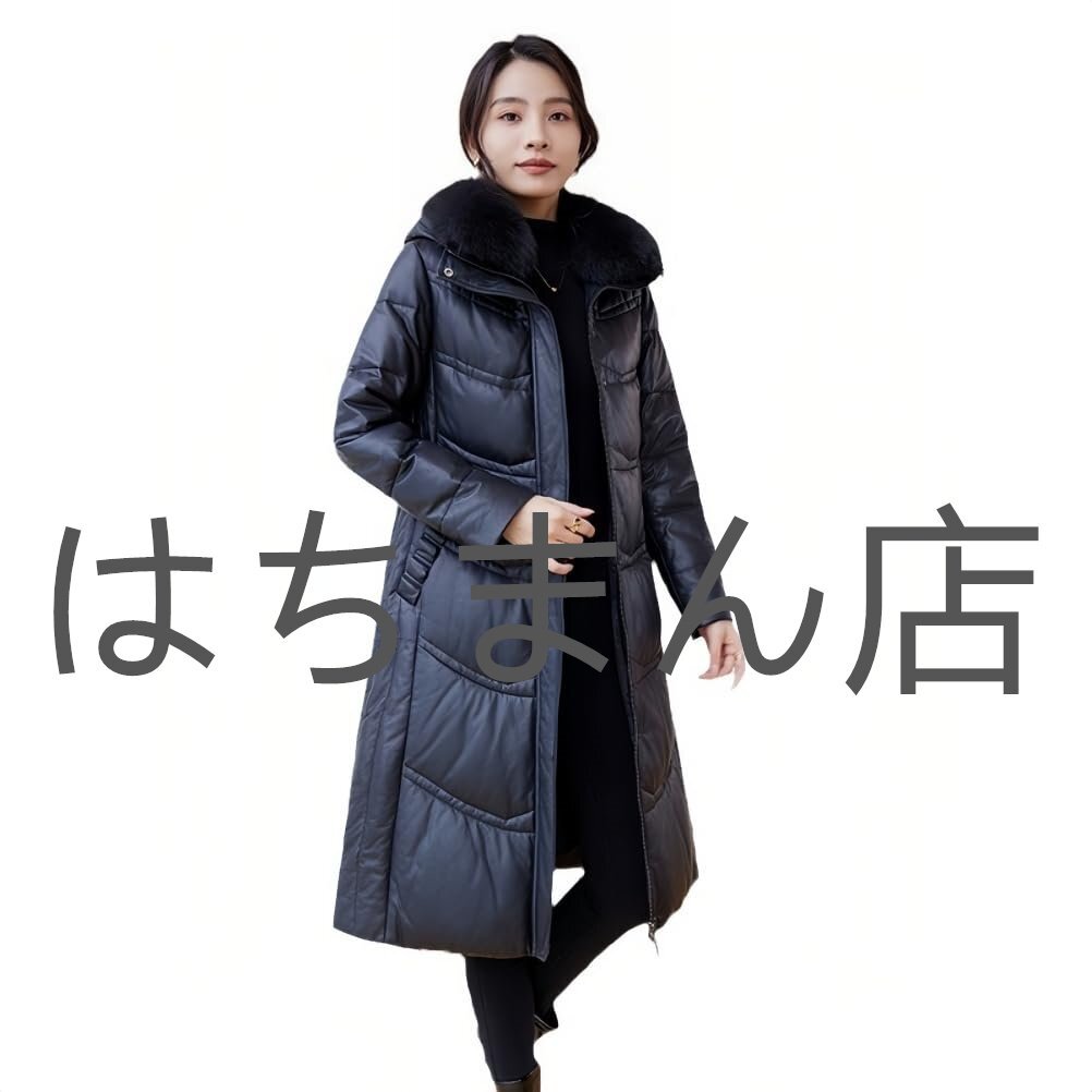 - レザーダウンコート レディース ダウンコート ロング丈 ラムレザー 本革 ロングコート フォックスファー 軽量 防寒秋冬 ブラック M-4XL