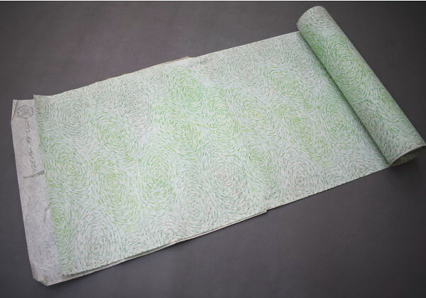 - A17-1【凛々】即決 新古品 交織 ゆかた反物 緑 渦 未仕立て品