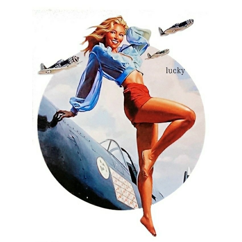 > ヴィンテージ レトロ 転写 ステッカー 車 カッティングステッカー シール シート ミリタリー ノーズアート ピンナップ ガール 装飾 luk294