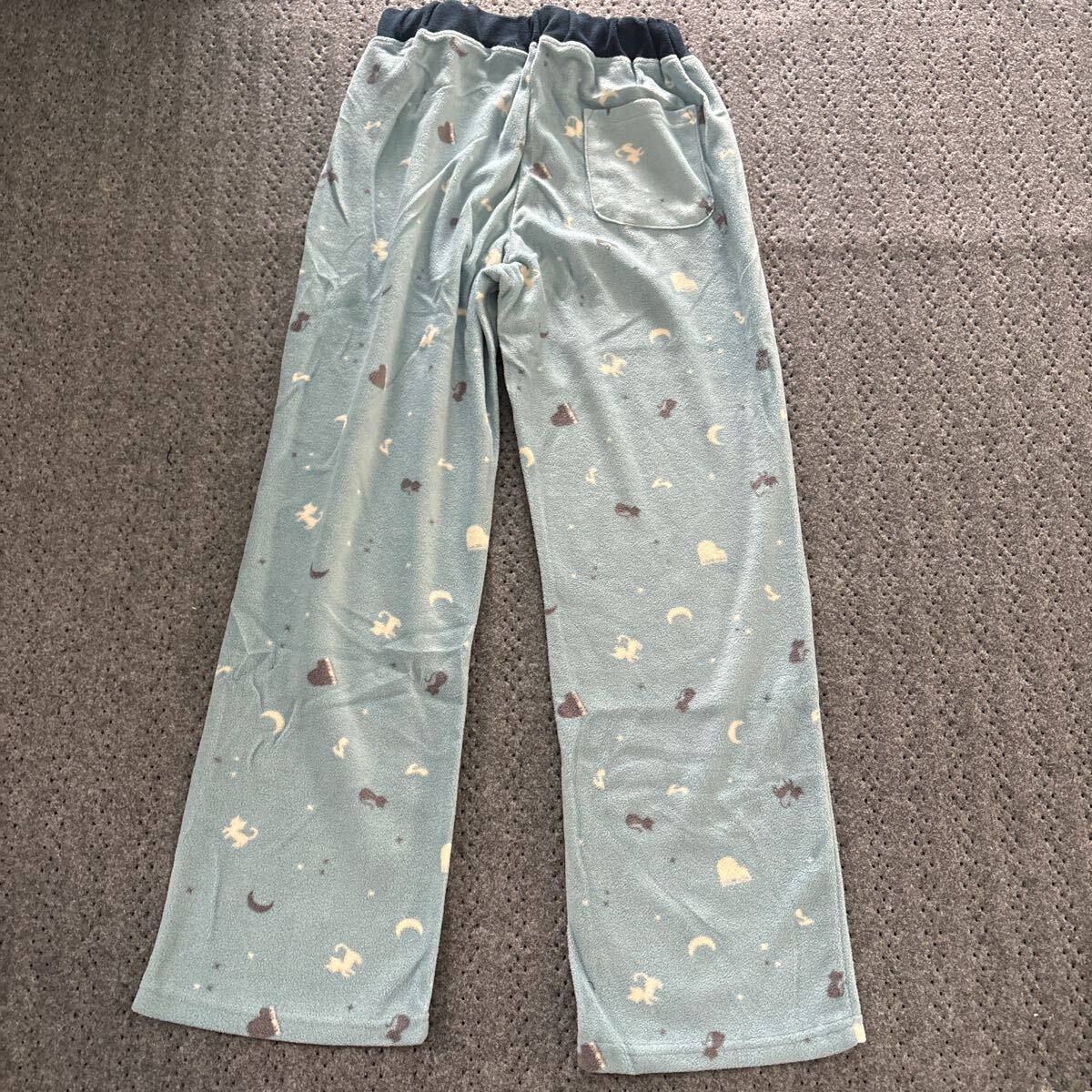 - 未使用●フリース ホーム パンツ ネコ柄/ブルー/青/猫柄/Lサイズ/長ズボン/スウェット/パジャマ/部屋着/長ずぼん/ナイトウェア ★2416-5