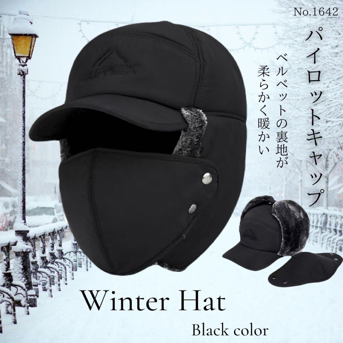 - パイロットキャップ ブラック 防寒帽子 フライトキャップ 耳あて フェイスカバー