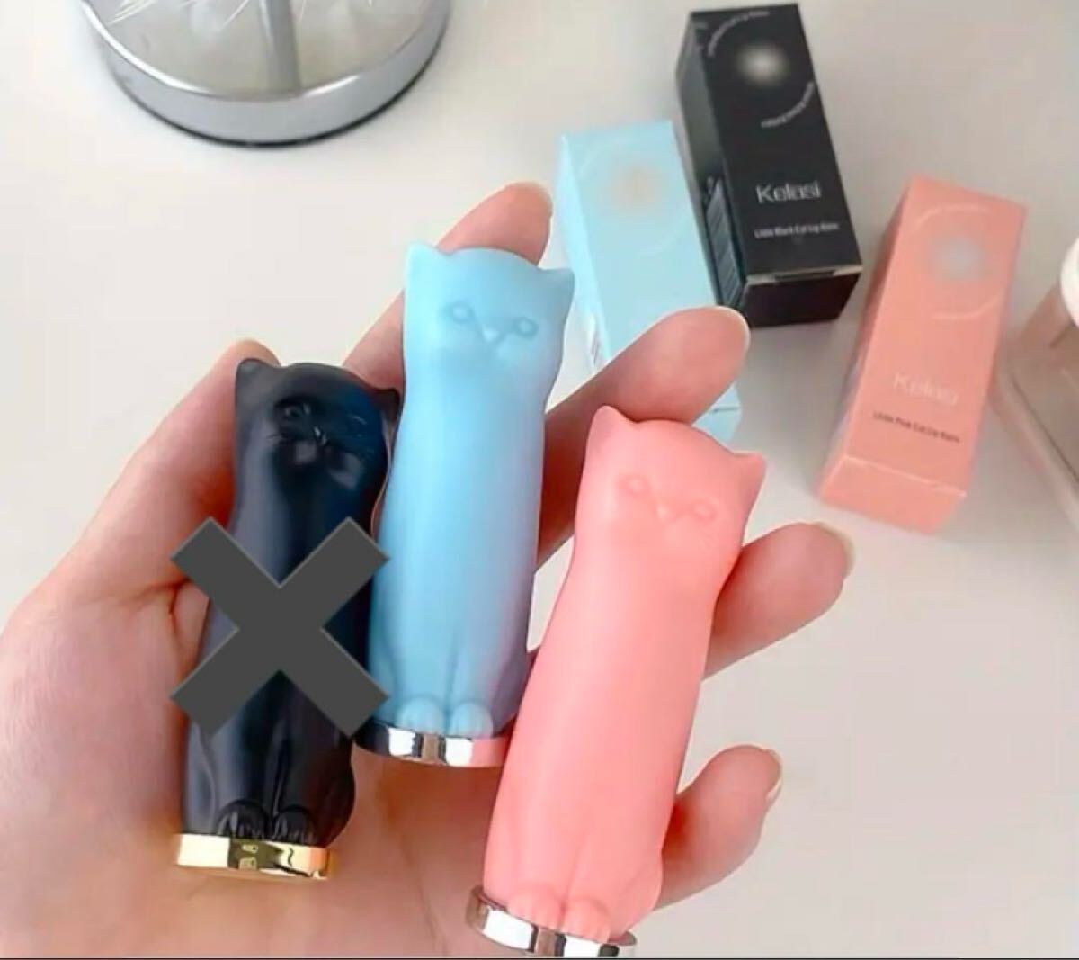 - 猫型リップバーム ピンク、ライトブルー 2個セット