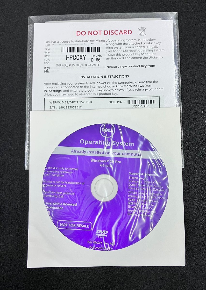- 2YXS2396★現状・未開封品★DELLオペレーティングシステム Windows 10 Pro 64Bit&Windows 8P,10P,10H 32/64bitプロダクトキー0PC0XY JN38V