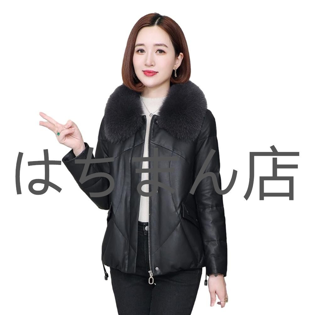 - ダウンジャケット レディース ダウンコート レザーアウター ファー付き ファーフードフォックスファー 冬 防寒 防寒 冬服 M-4XL
