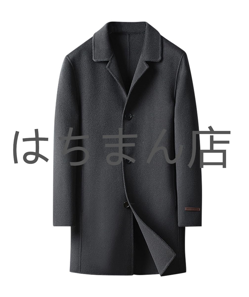- チェスターコート メンズ ウール素材 メンズコート アウター メルトン ロング ベーシック チェック 秋冬 グレー M-4XL
