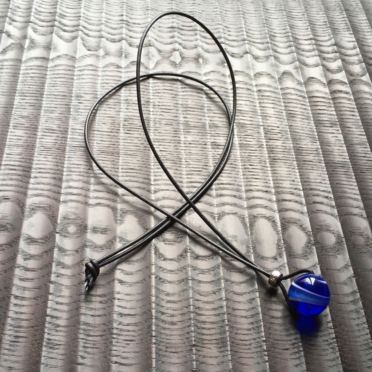 - (送料無料)手作りガラスとんぼ玉 紐のペンダント ブルーホワイトマーブル