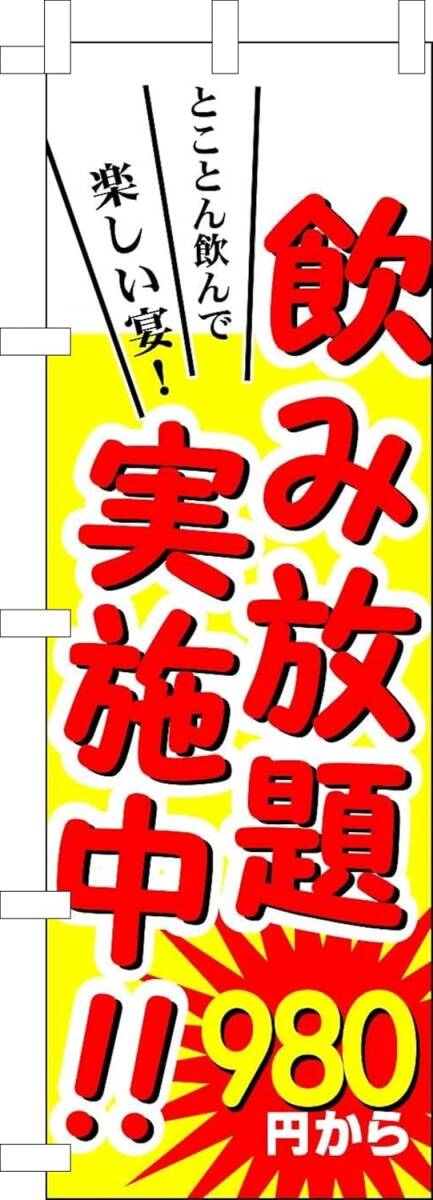 - のぼり旗「飲み放題 980円 のぼり 呑み放題 幟旗 飲み放題 宴会 生ビール 麦酒 居酒屋 宴会 ビアガーデン」何枚でも送料360円!