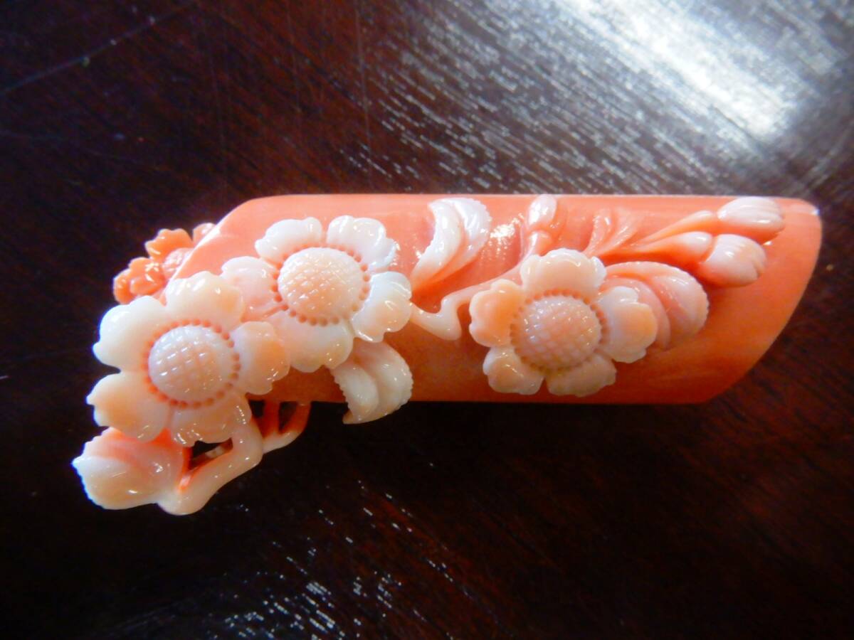 - <銀の斧>アンティーク本珊瑚帯留・桜の花・5cm×2cm・高さ11mm・細工の美しい帯留