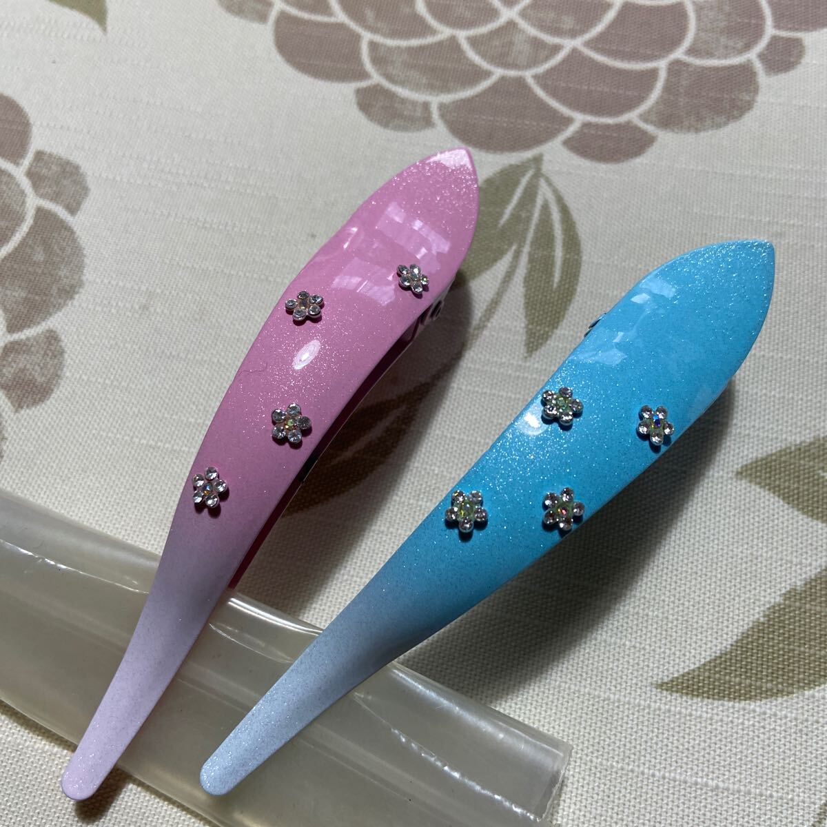 - コンコルド クチバシクリップ ピンク 水色 ラインストーン 花