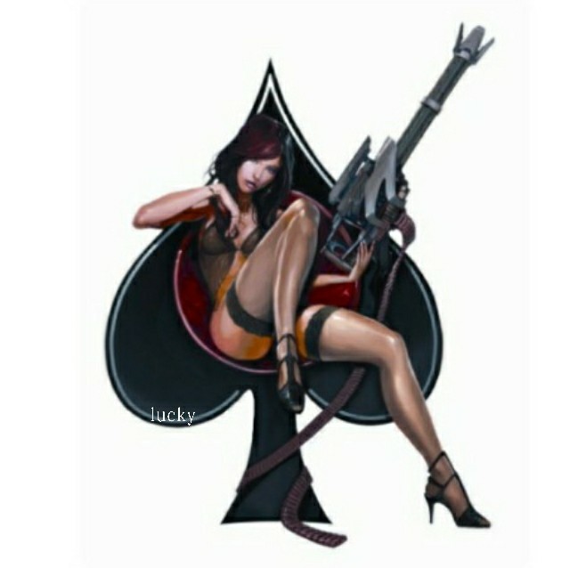 > 転写 ステッカー 車 カッティングステッカー シール デカール ワイルド セクシー ガール トランプ スペード Gun 銃 機関銃 装飾 luk223