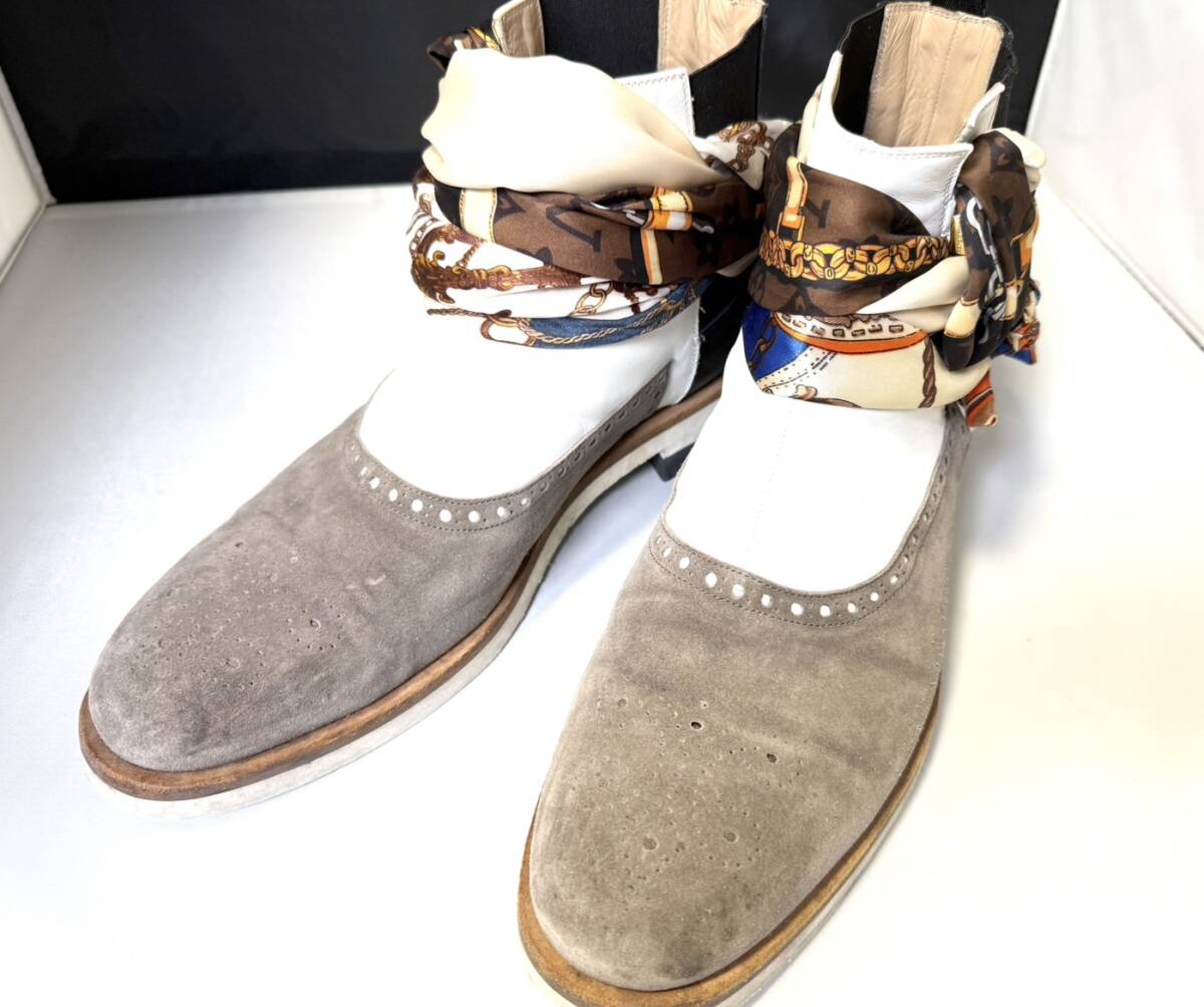 - 【2way スカーフ 装飾 &長身ヒールUP】セルジオロッシ × クリスタル メタル 装飾 スカーフ3枚 セット付き ブーツ ローファー シューズ
