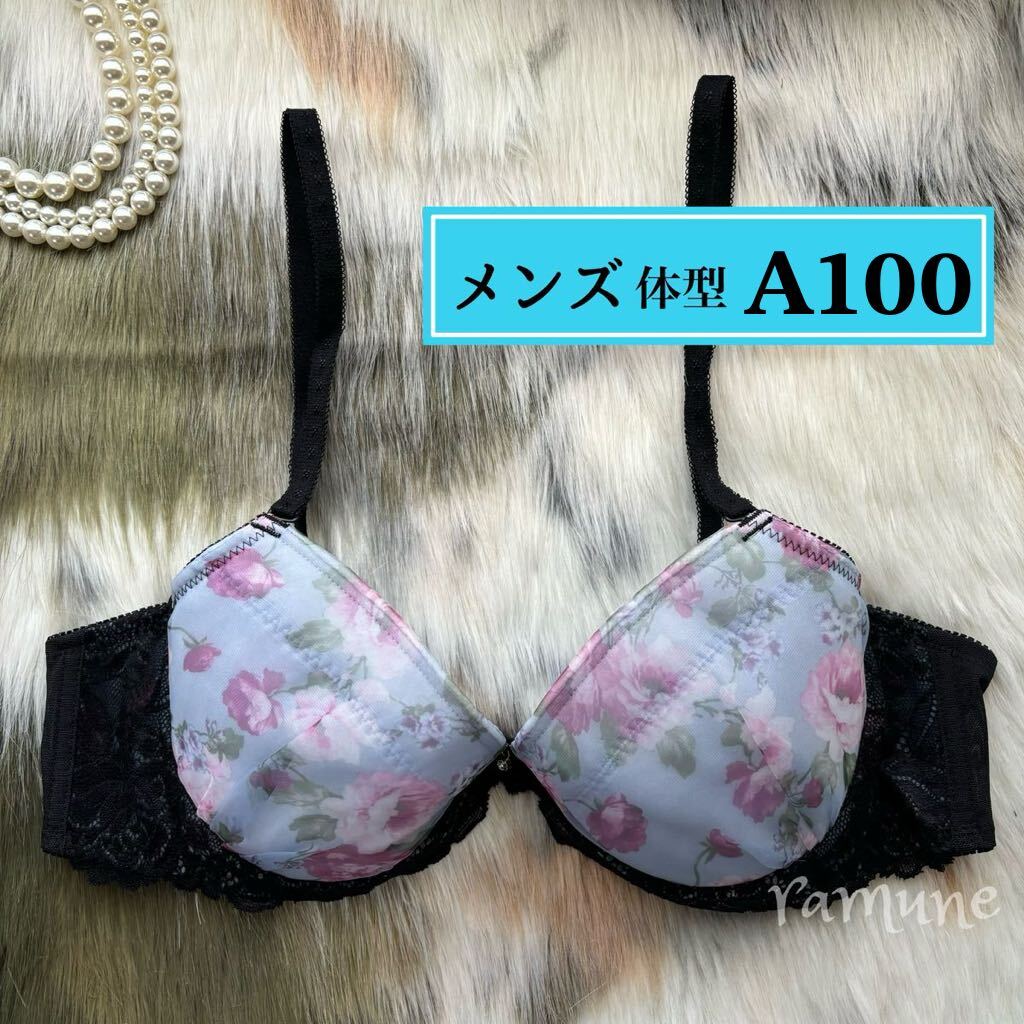 > 【メンズ A100 サックス】新品 男性用ブラジャー メンズ体型 取り外せるパッド付き メンズブラ 下着 ランジェリー アンダー大きめ 男性向け