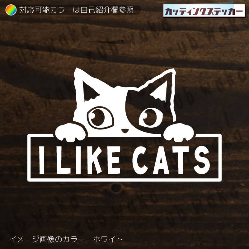 - 覗き猫⑨ILIKECATSブチステッカー 文字絵柄だけ残るカッティングステッカー・ネコ・郵便受け・玄関・インテリア