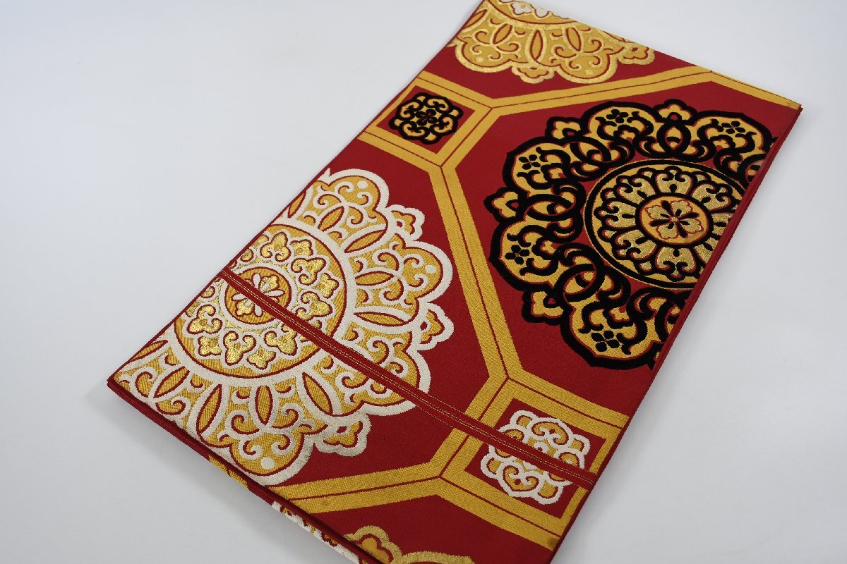 - 袋名古屋帯 六通柄 蜀江 花 レトロ 帯丈412cm ★着物屋 ne-13618 桜庭呉服店
