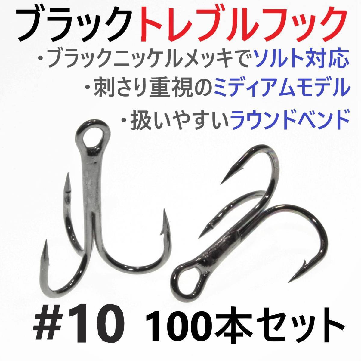 - 【送料150円】ブラックトレブルフック #10 100本セット トリプル ルアーフック ソルト対応 釣り針