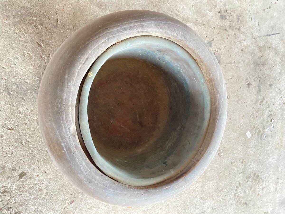 - 【送料無料】銅釜 無垢 くり抜き火鉢 伝統工芸 古民具 茶道具 手あぶり 囲炉裏 骨董 時代物 火鉢