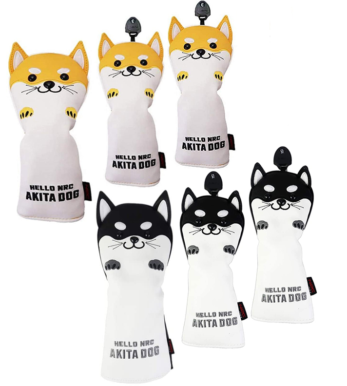 - ゴルフヘッドカバー ドライバー用カバー DR/ ウッド FW 2点/ 3点セット 防水仕様 変換ダグ付き 秋田犬 送料無料 自由に組み合わせ