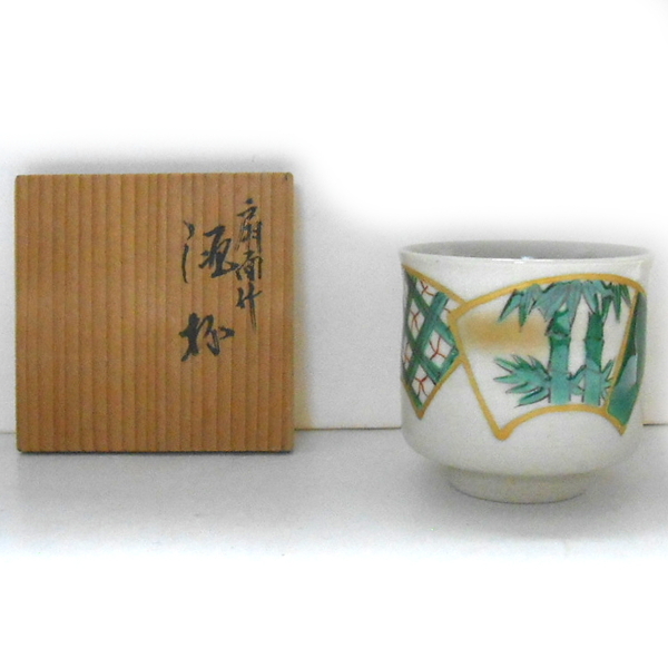 - 九谷焼★俊山作 扇面竹 酒杯☆箱付