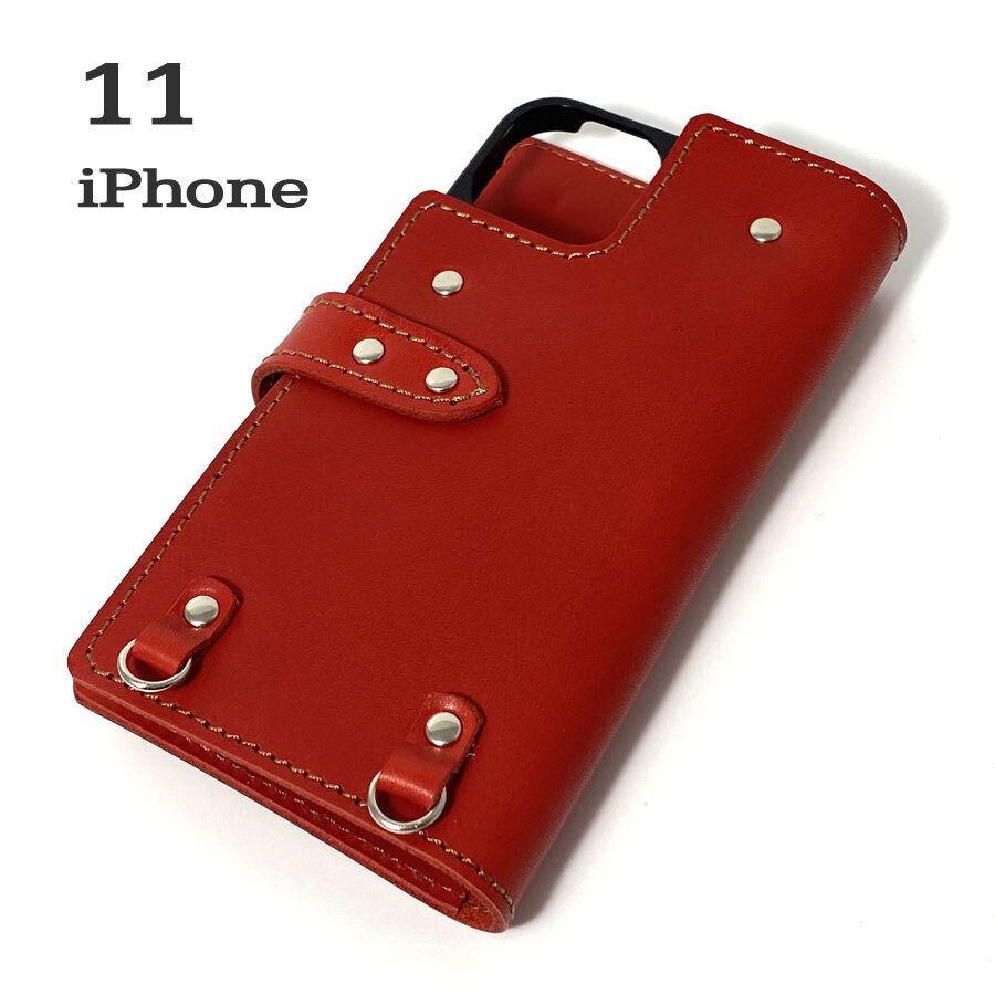 > 【特価】 手帳型ケース iPhone 11 用 ハードカバー レザー スマホ スマホケース スマホショルダー 携帯 革 本革 レッド