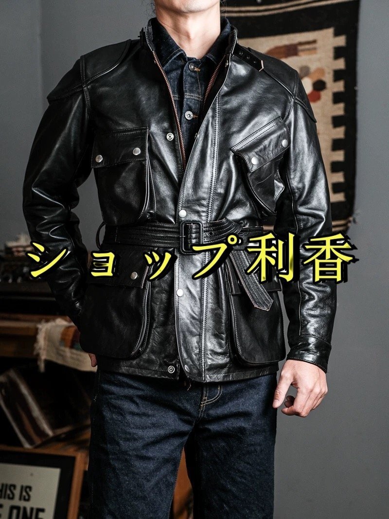 > 極美品★ ダブルライダースレザージャケット レザージャケットカーコート レザー 茶芯 馬革 S