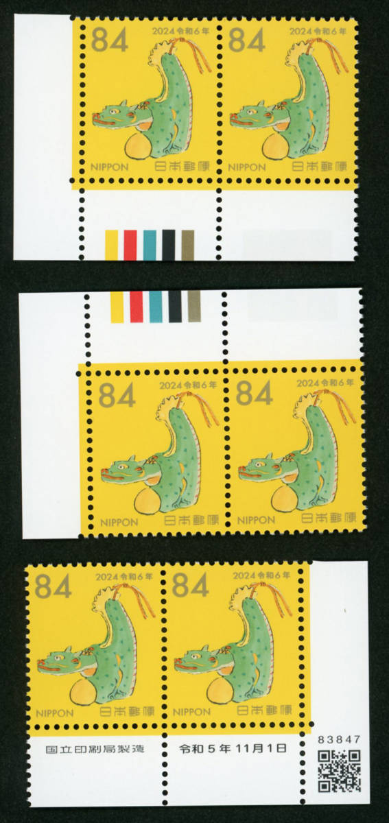 22504A6◆2024年用 年賀切手タツ84円CM上下 銘2B★85極美品 令和6年用 発光剤CM入(CM 2枚掛)