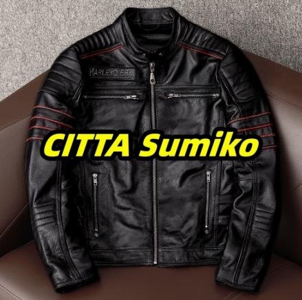 - ハレーバイクレザージャケット 上品 本革 高級 牛革 刺繍 ライダースジャケット 革ジャン