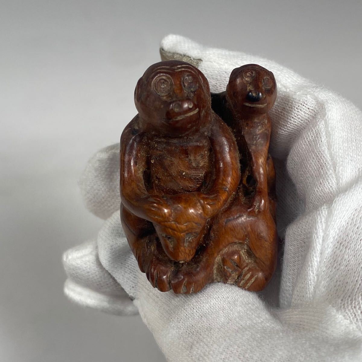 - 根付 時代物 木彫 提げ物 古根付 猿 親子 さる コレクション